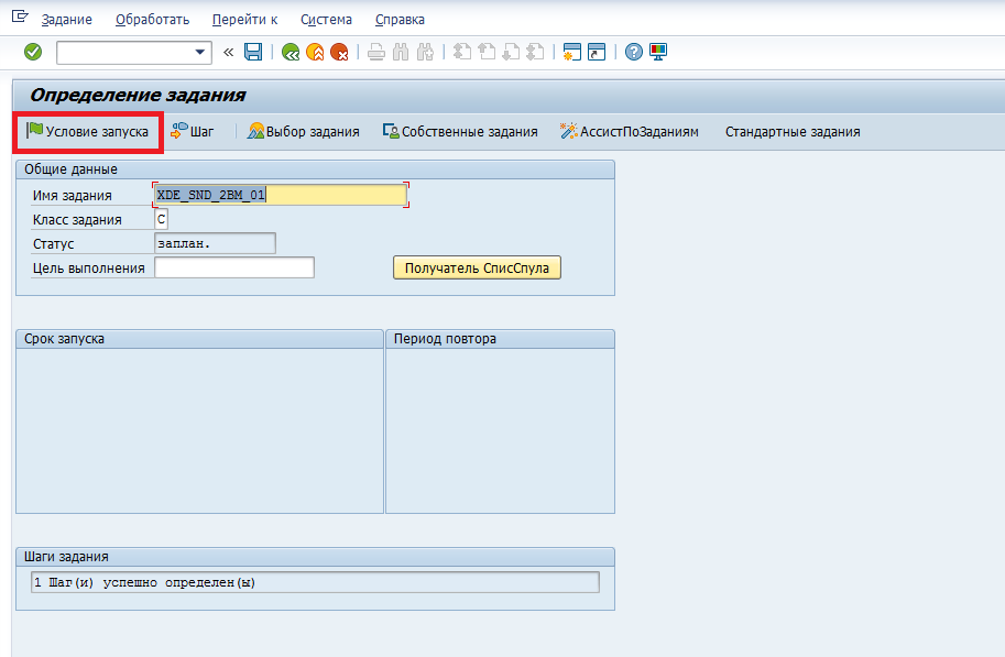 Определение задания. Нажмите кнопкуУсловие запуска.