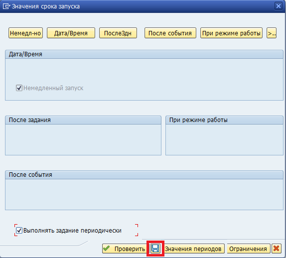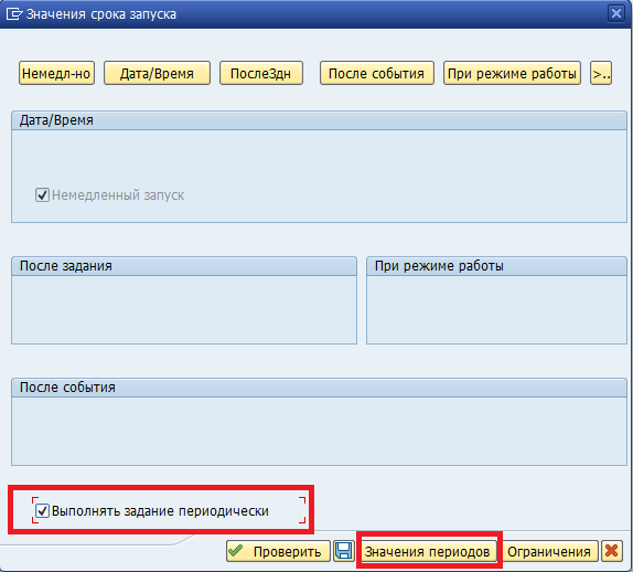 Выполнять задание периодическии нажмите кнопкуЗначения периодов.