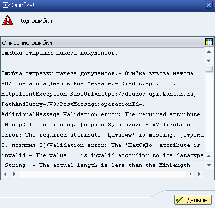 [Тип бизнес-объекта SAP] [Идентификатор бизнес-объекта SAP] [Вид документа SAP] Ошибка генерации файла в ИМ |