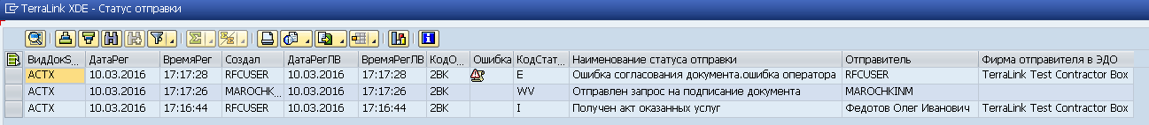 Для просмотра очереди исходящих документов запустите транзакцию /TRL/XDE_OUTBOX, введите на селекционном экране требуемые ограничения (например, по дате отправки) и нажмите кнопку
