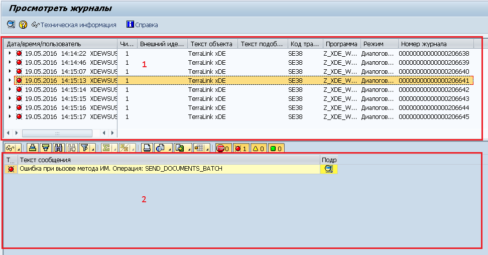 Модуль xDE для SAP ERP в ходе своей работы выполняет запись отладочной информации в журнал приложения SAP.