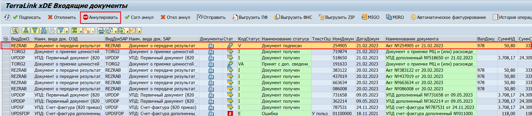 Таким образом, статус документа будет изменен на «Аннулирован»