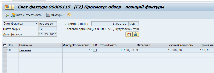 Будет открыто окно просмотра БО счета-фактуры.
