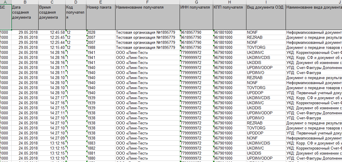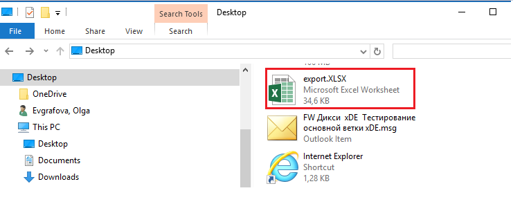 Выгруженный Excel файл имеет следующий вид.