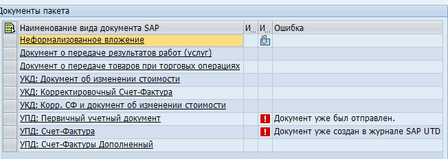 В случае если документы определенного вида из данного БО счета-фактуры еще не отправлялись, столбец Ошибка не будет заполнен.