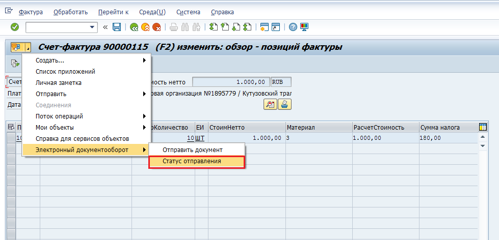 В GOS-меню транзакции выбрать пункт меню «Электронный документооборот/ Отправить документ».