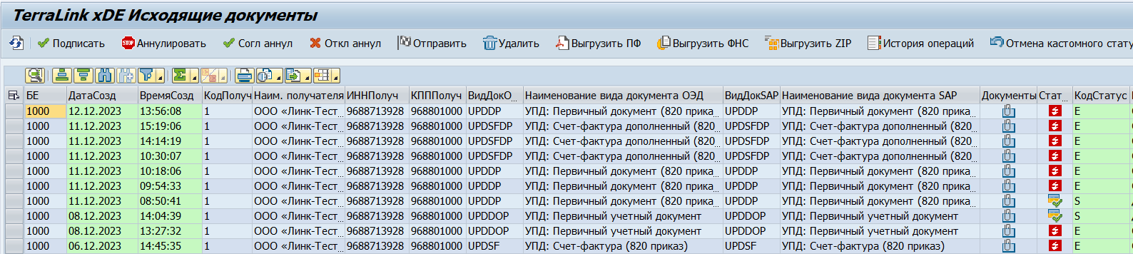 Отправка документов осуществляется из SAP-транзакций просмотра и