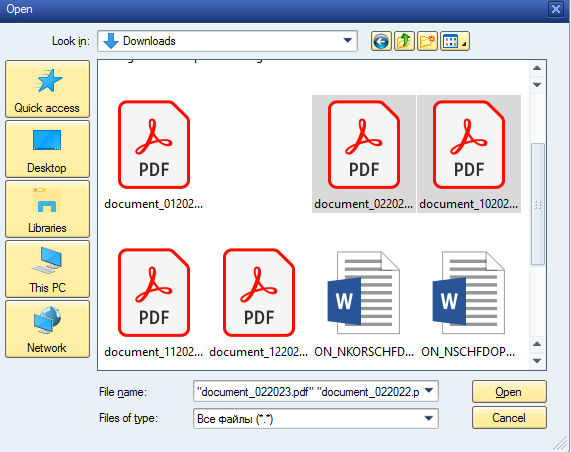 Для поля «Файл» можно выбрать один или несколько файлов в окне выбора файла.